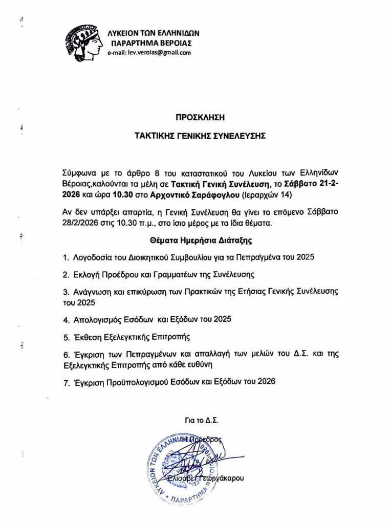 Πρόσκληση Τακτικής Γενικής Συνέλευσης