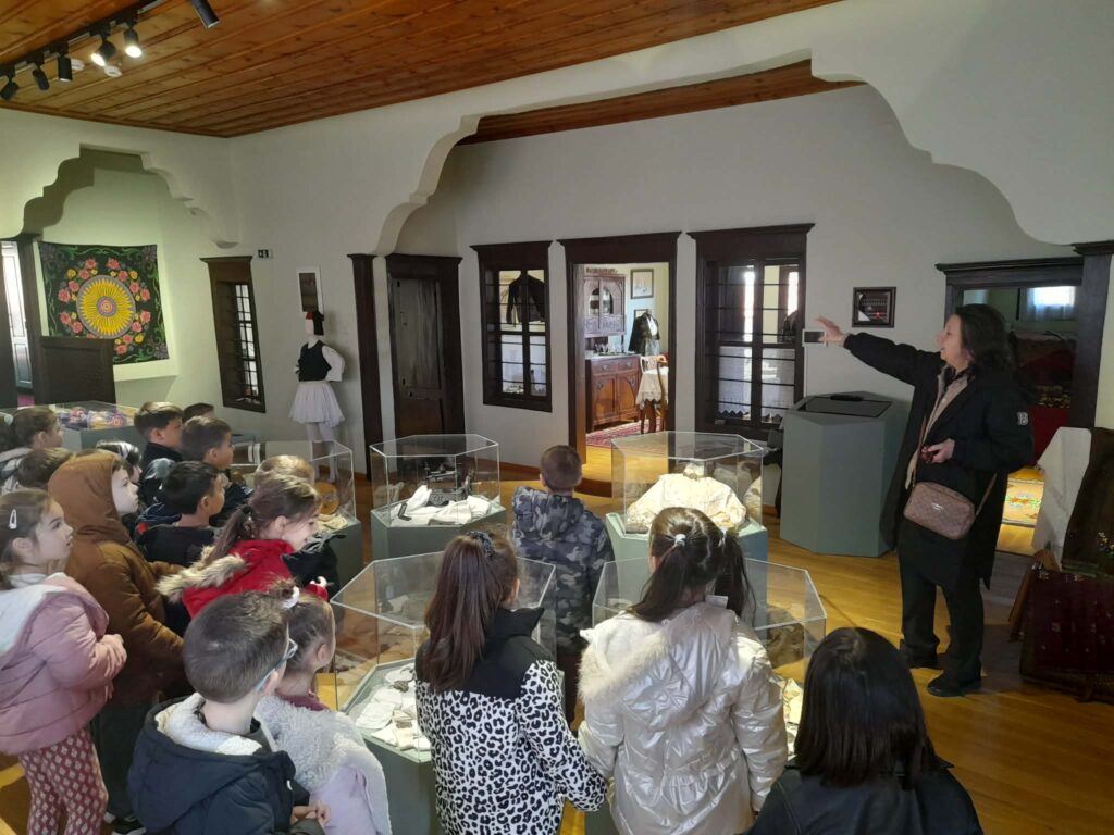 Οι μικροί μικροί μαθητές/τριες και οι εκπαιδευτικοί που τους συνόδευαν είχαν την ευκαιρία να ξεναγηθούν στο Αρχοντικό και να ακούσουν ενδιαφέροντα πράγματα που αφορούν στον τόπο μας.